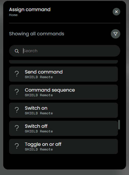 Then add it (show as an entity) to the remote through the home assistant integration. Then map a button to this entity. You can raise the popup menu with this hack