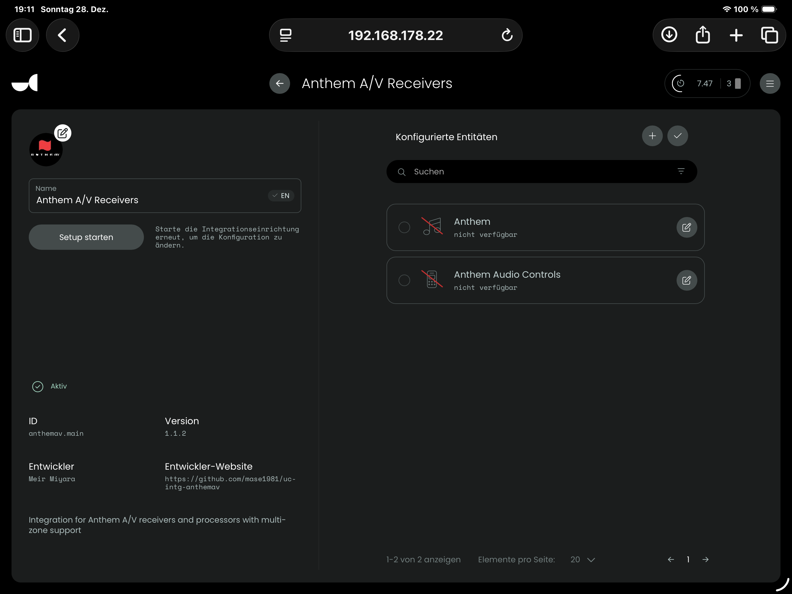 I also tried sending the Home Assistant integration that I have for the AVM90 but it doesn’t show it in the list of entities I can expose via the Unclosed Circle HA integration, despite being listed as a media player entity in HA.