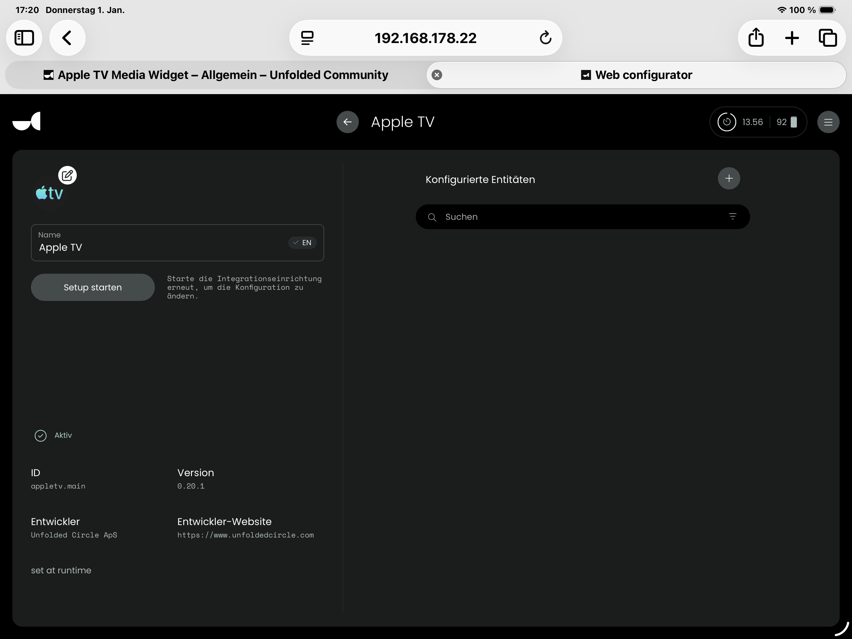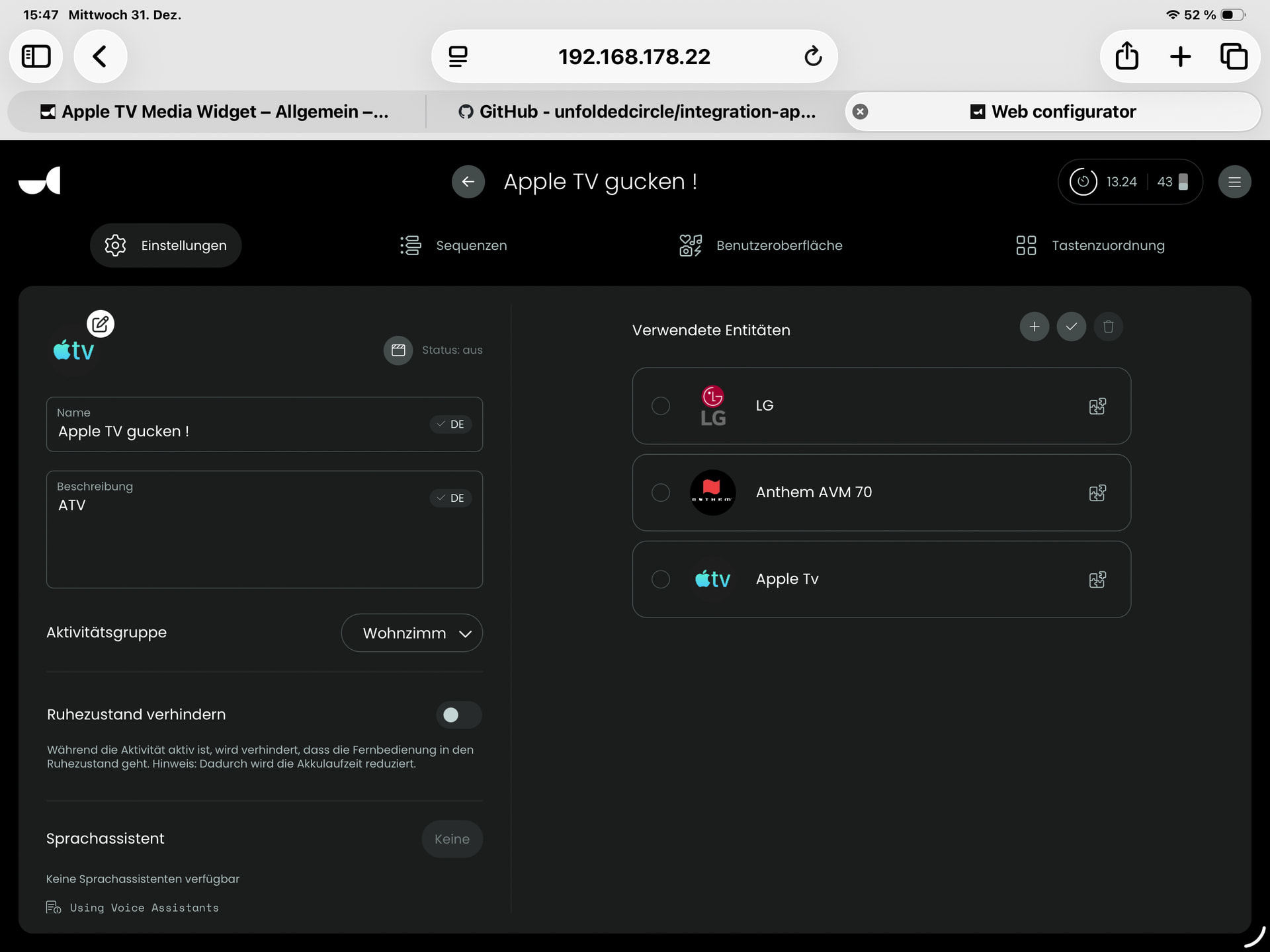 You need to add the Apple TV entity to the activity first in settings. Otherwise it will not show up. Also please stick to English so other users can follow the discussion as well.
