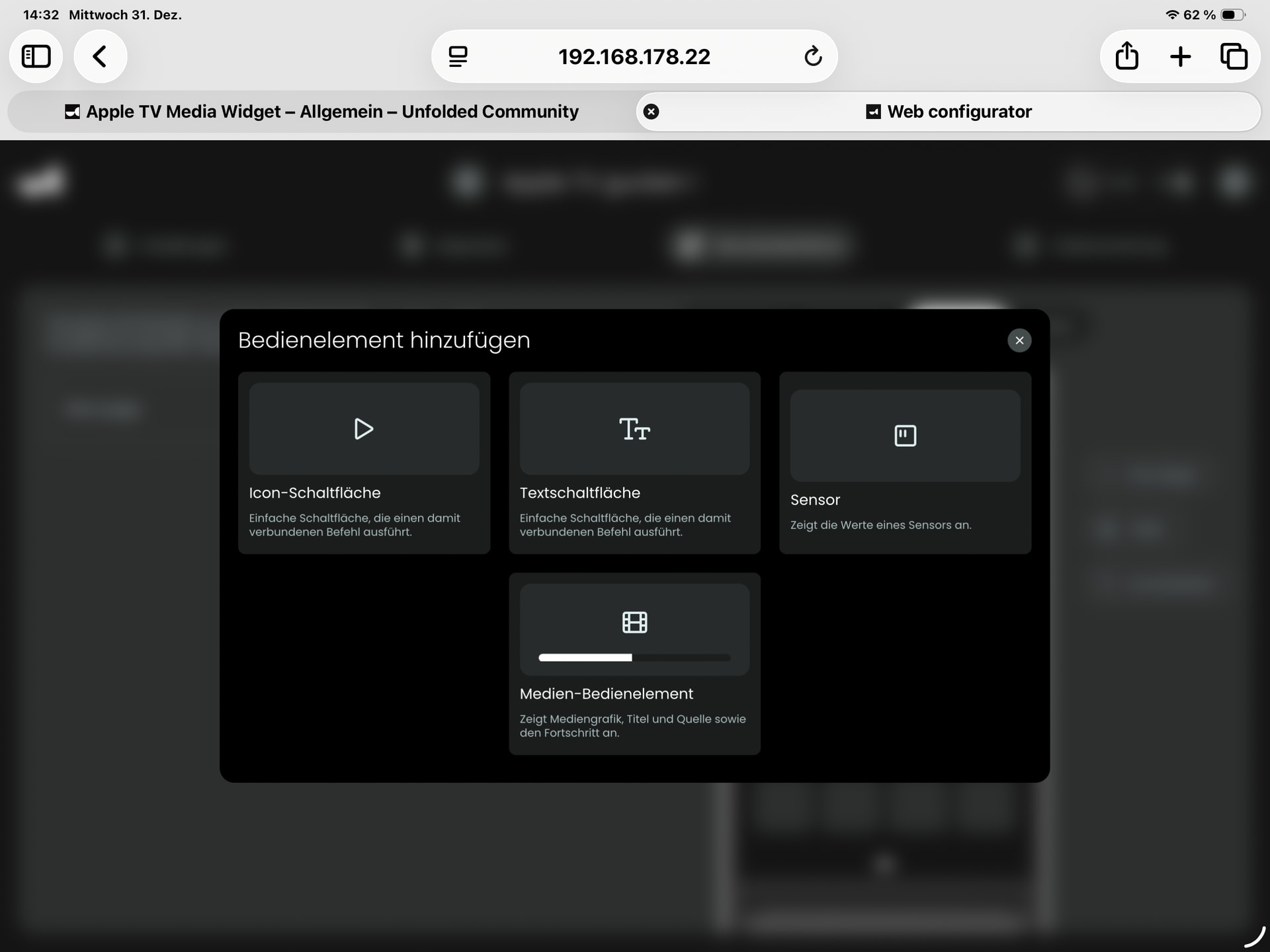 Er hat auf Widget hinzufügen geklickt, es öffnete sich ein Fenster.