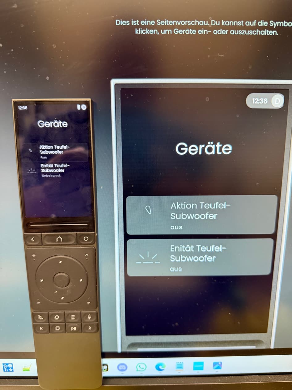 Mein Problem war, daß ich beim Start der Aktivität (TV) eine Fehlermeldung bei der Sat-Receiver Entität erhalten habe. Ich habe auch eine Geräteliste auf der Fernbedienung, wo der Sat-Receiver ausgegraut war (vermutlich weil nicht erreichbar). Der Sat-Receiver lief aber anscheinend problemlos und ließ sich auch über andere Wege bedienen (HTTP-Befehle). Ich habe dann Receiver und Fernbedienung neu gestarten und irgendwann lief es dann wieder.