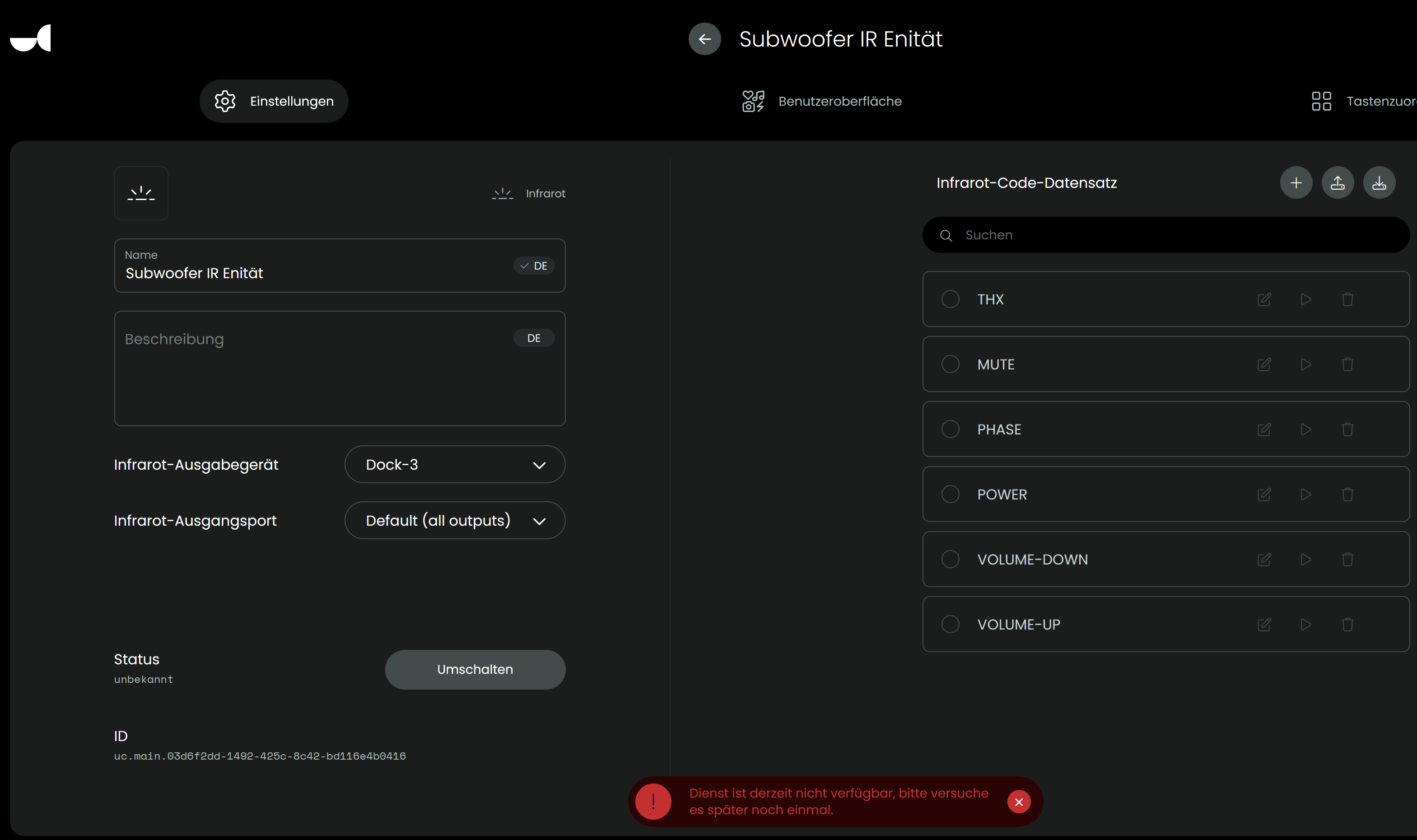 Diesen Fehler habe ich bei allen IR-Enitäten, kann man das reparieren oder muss ich ein werksrest machen und alles neu erfassen?? (wenn ich auf die Pfeiltaste der Enität drücke)