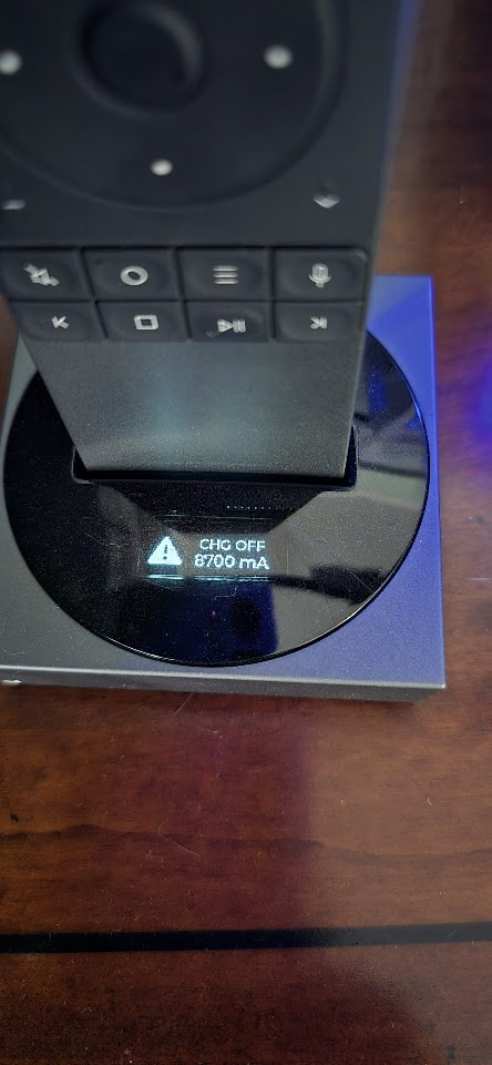 Sometimes it’s higher than that and sometimes it’s lower than that. It also seems that when it does it the dock goes through it’s full boot cycle. Not sure if the simple act of placing the remote in the dock is causing the reboot? Most of the time when I put the remote into the dock it immediately gives me the charging chime and starts charging. Every once in a while it goes through (what looks like anyway) a full boot up cycle on the display. Most of the time even when it does that, it starts charging OK, but once in a while it fails to charge and I get that on the display. A power cycle (with the remote out of the dock of course) fixes that issue every time. I bought myself a wireless charging dock and usually now charge the remote on that (although I have to do that upside down because of the location of the charging pad on the remote)! Not really a show stopper…just wondering if somehow (and fairly rarely & randomly) putting the remote in the dock is causing a reboot and charge failure?