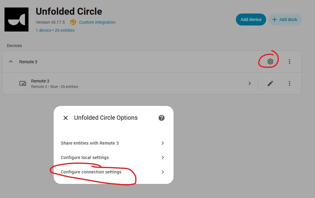 But after reinstallation, HA can see the remote and my dock, but the integration was trying to find the websockets at the old IP, how can I make it try to connect with the new one which is now?