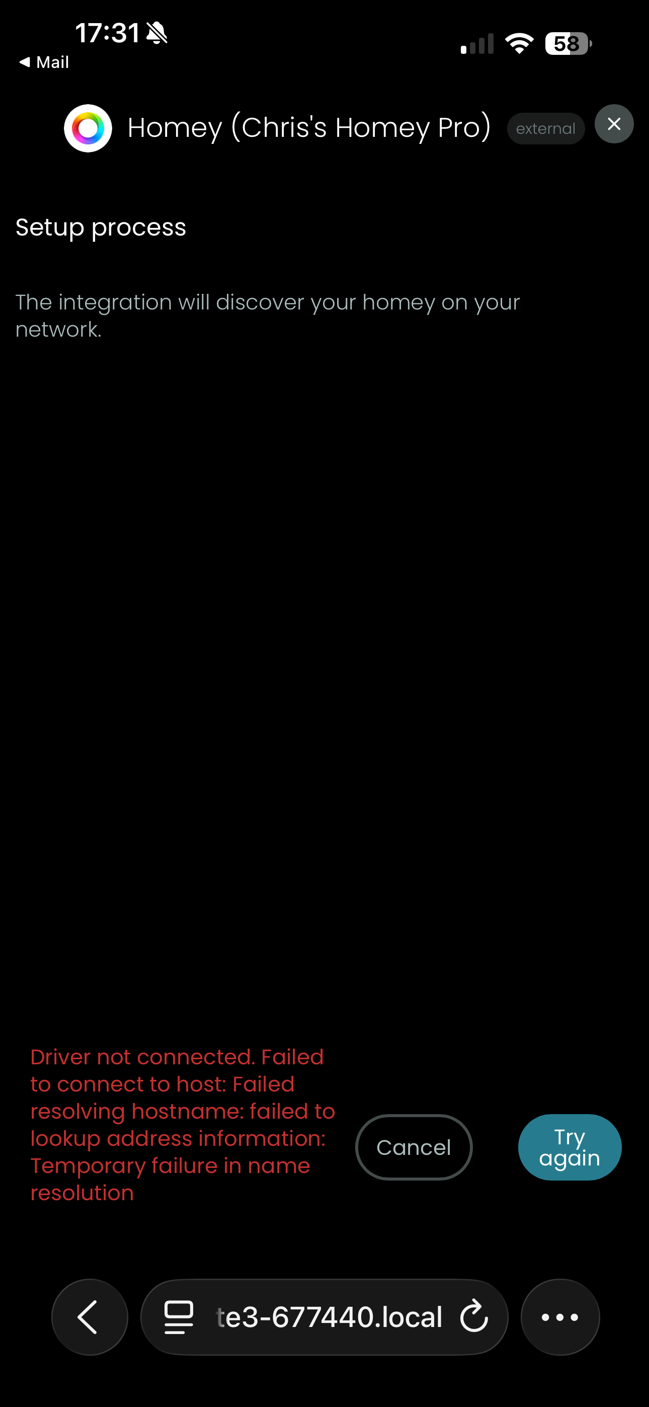 just setting up my remote 3 and trying to add the Homey integration. The configurator can see my Homey as it knows its name (Chris’s Homey Pro) but when I try to add it I get the following message