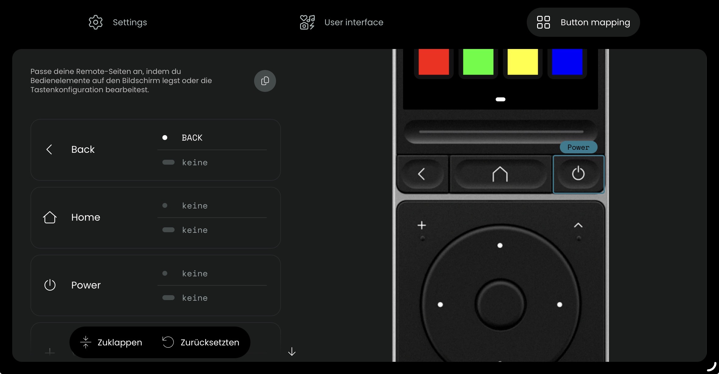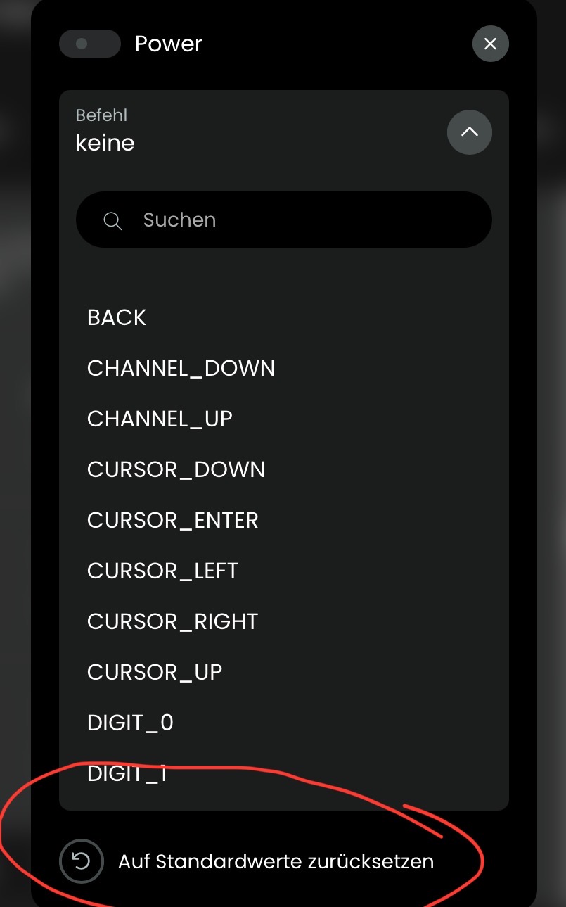 I tried to delete the setting of the POWER-button of an entity by clicking on „Reset to default“: