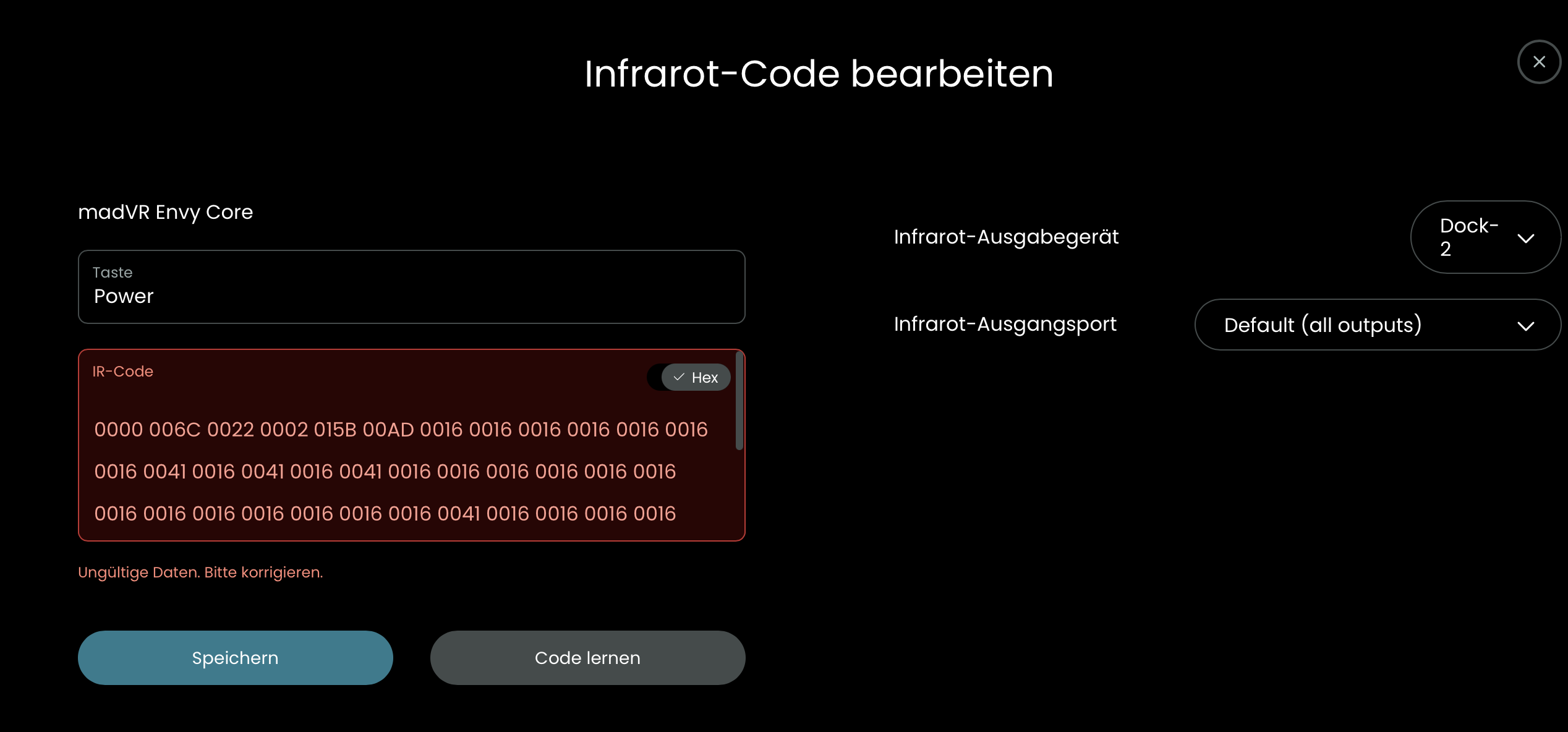 Try changing Hex to Proton. Click the Hex button in the IR code field.
