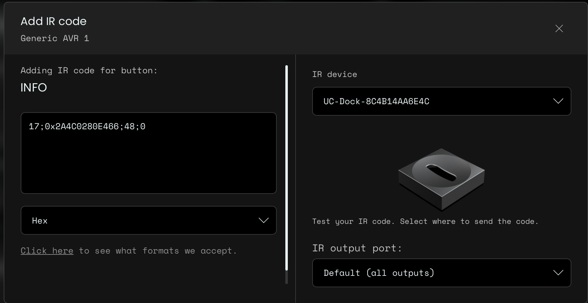 I created the custom button for Info, the dock located the code, but there is no way to save it it seems. When I go to watch tv activity, add the new remote as an entity, then try to configure a button, the new INFO button is not in the drop down list. It also isn’t in the drop down list in the new remote entity either when I try to configure a button there.