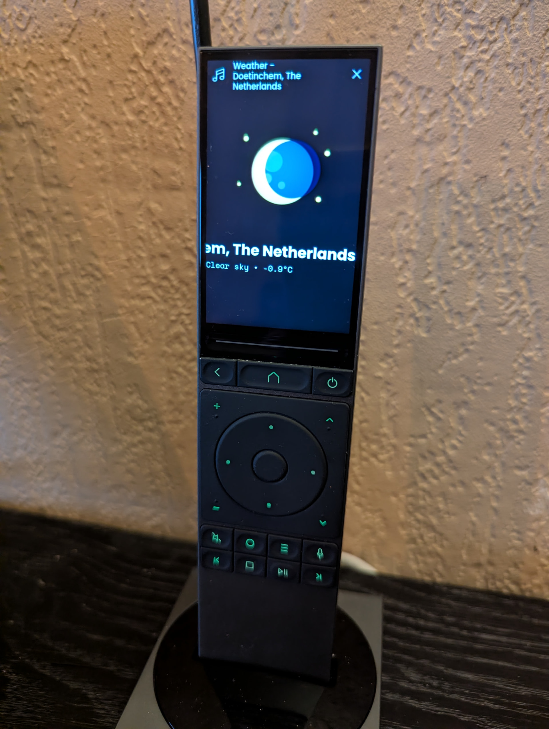 Features Real-time weather display with beautiful icons Support for ZIP codes and “City, State” location formats Automatic updates every hour Weather-appropriate icons (sun, clouds, rain, thunderstorms, etc.) Temperature, weather description, and location display Easy setup through the Remote’s web configurator