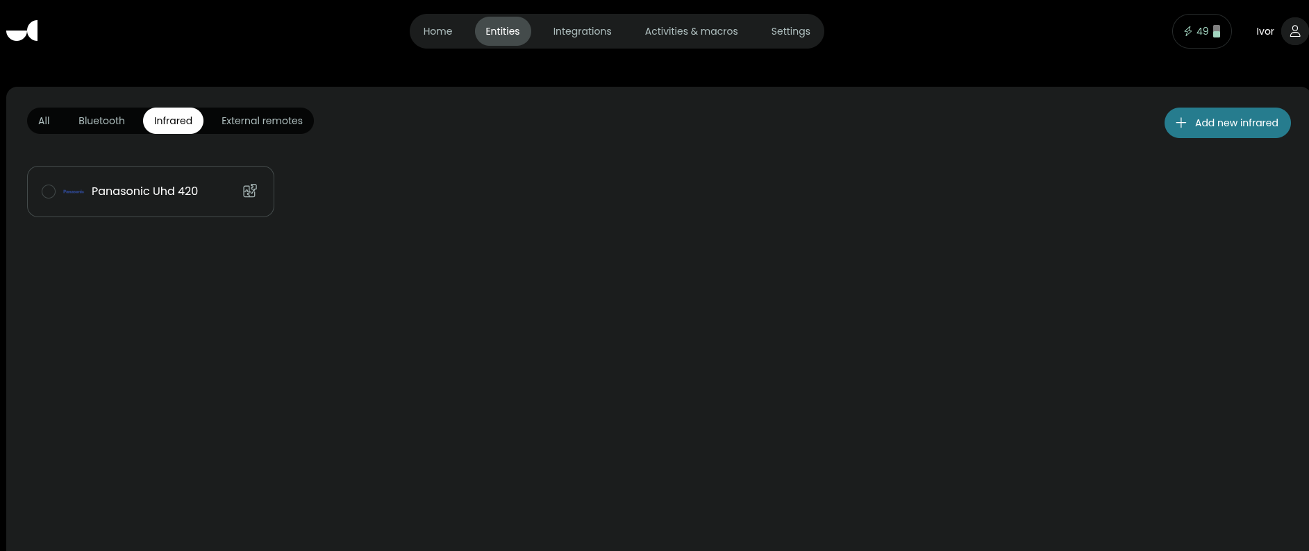 If simply ir you need to make an ir model/entity first then use that entity in your activities. This is not done in the Panasonic integration.
