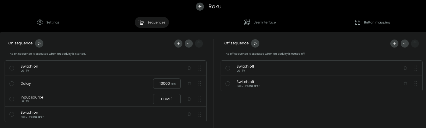 \* The Roku does not have an on/off function, but I only included it in the sequence because there were power options for the Roku in the sequence set up