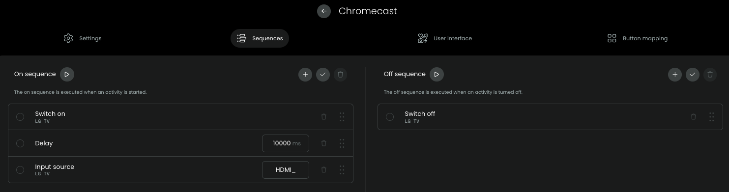 \* The Chromecast does not have an on/off function, so I did not include it in the sequence.