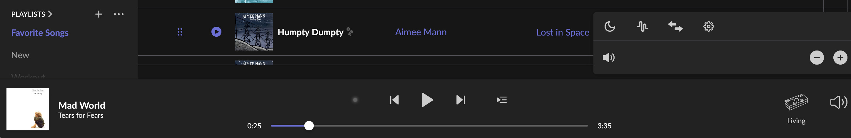 The volume control at the far right is thanks to the HomeAssistant integration. If I hit the + or - it fires an event to my HA.