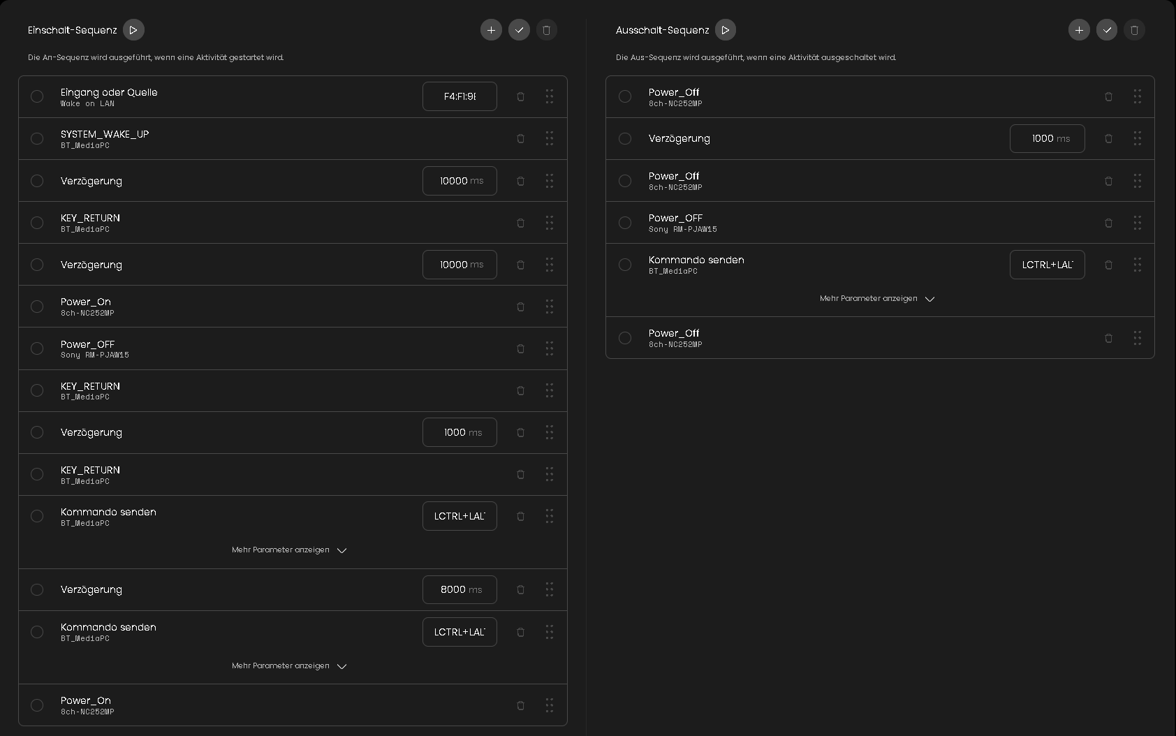 I have worked around it now by implementing ON and OFF macros that prep all the devices so that the actual activities don’t need the delays.