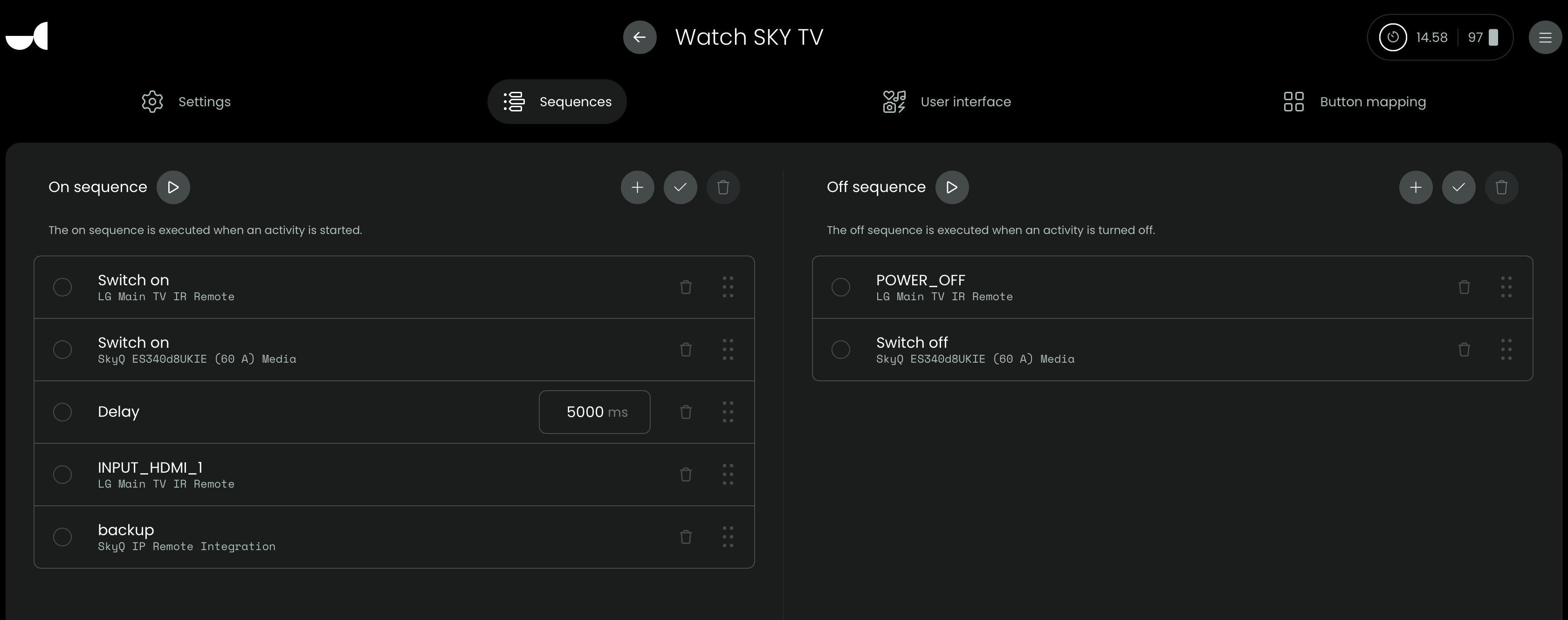 When I commence the “Watch Sky TV” activity this turns on my LG TV, sets the HDMI input and turns on the SkyQ box.