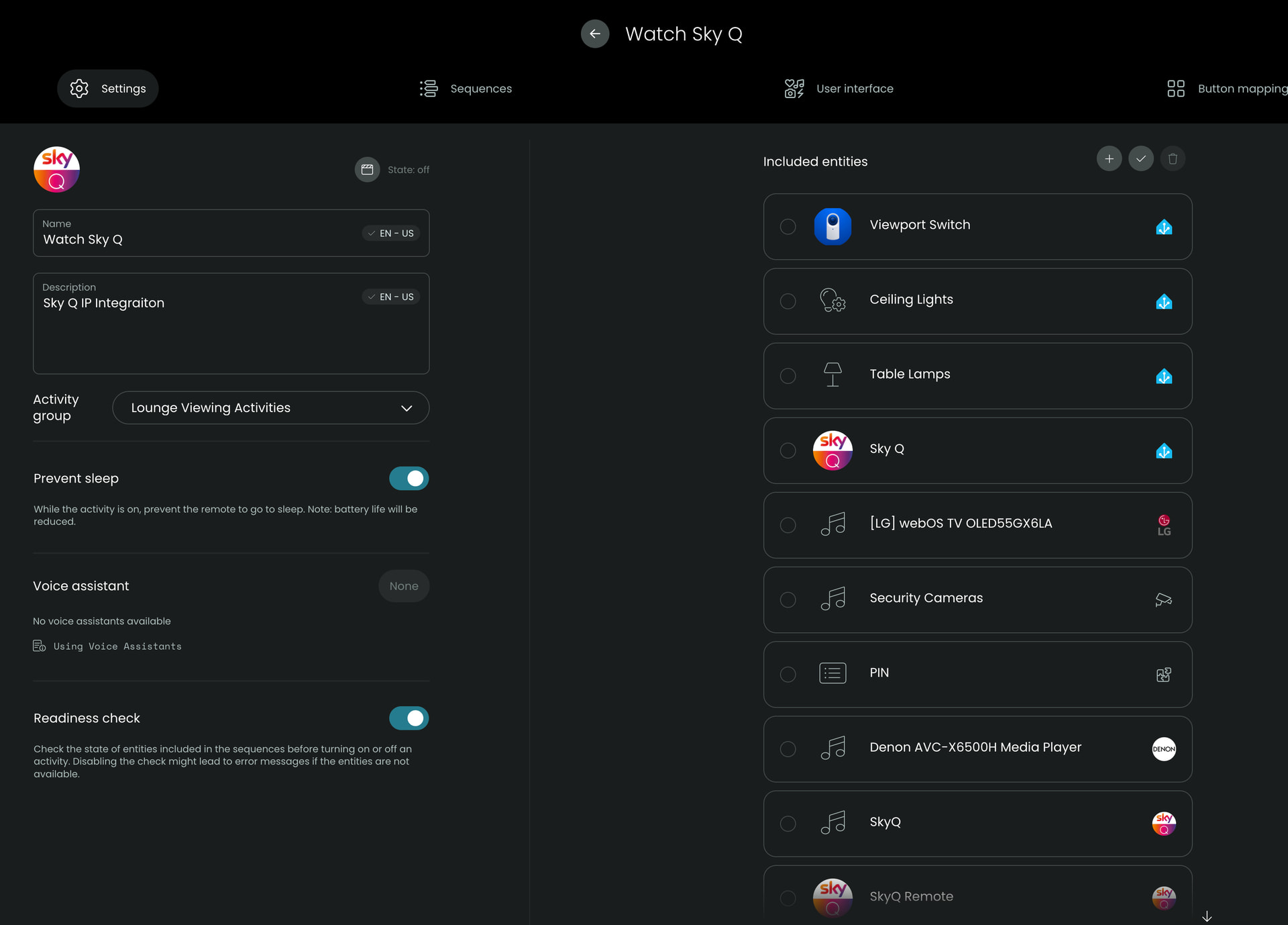 Wish I could help better in this case, I don’t own a skyq, I also live in the US and I wrote this integration blindly and made it work base on user feedback. So sadly I cant say for sure if your box will work other then say “try”. To answer your second question, that screenshot is from the activity setup, it’s an example on how to create a custom button to go to a specific channel on the box ![]()