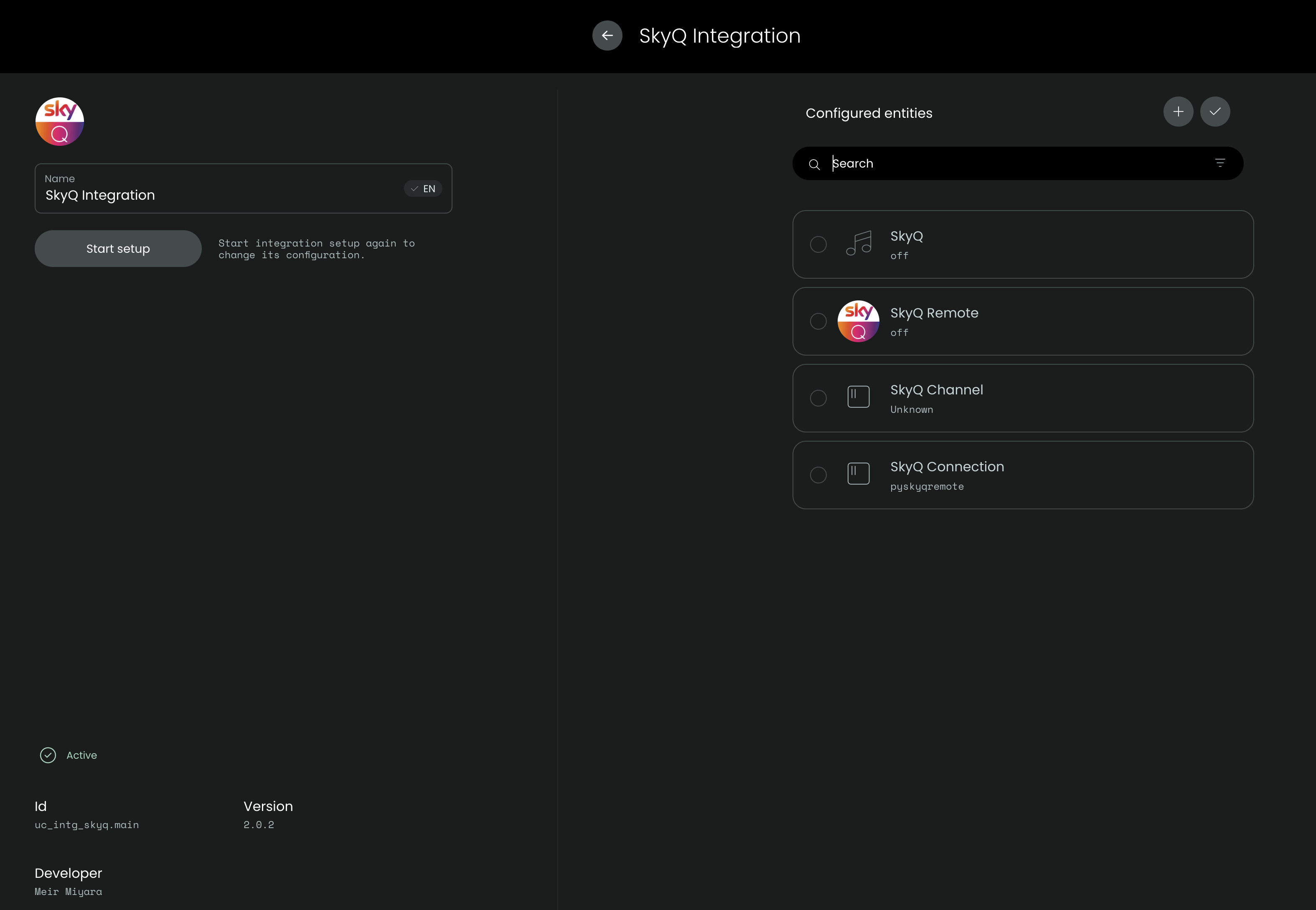 Were you able to complete the setup of the integration? Once completed you should see six entities (a media player, a remote entity and four sensors). These can then be used to create e.g. activities like shown in the readme file of the integration.