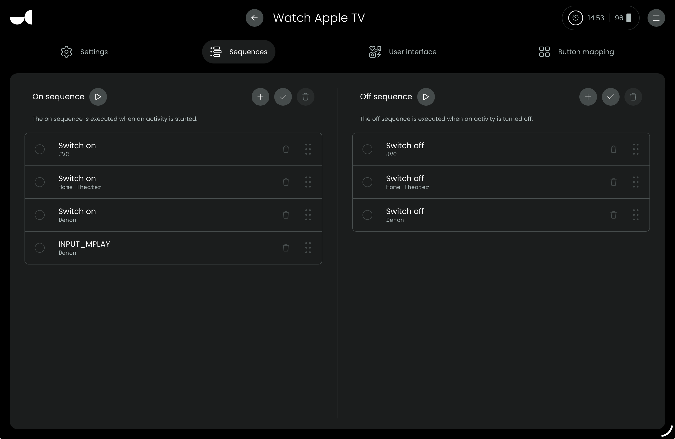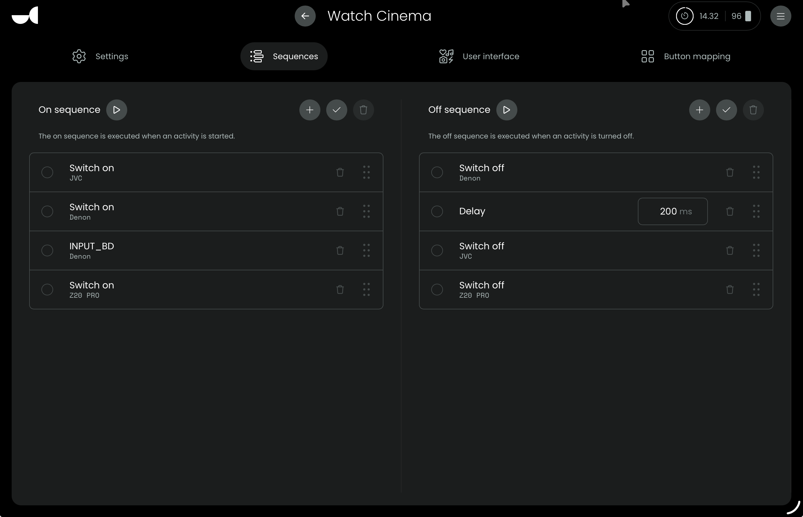 2025-10-12 17:35:56.487147 +00:00 core NOTICE Starting activity ‘Watch Cinema’ (uc.main.c91c2be9-2fcc-4322-86ea-9791e30778e7) in activity group: ‘Home Theatre’ (default)