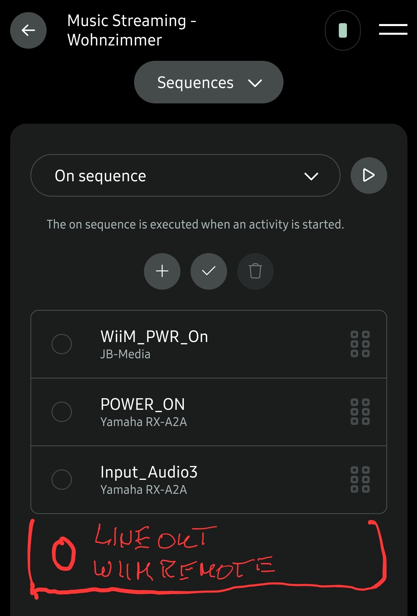 I have two activities. For one, I need the music output of the WIIM in the start sequence to be set to “line out” for the other to “optical out”. But there is no line out to choose. I can choose two times “line-in”. What is this for?