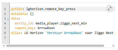 “Custom - learned IR codes”,“Ziggo Next”,“Down”,“HEX”,“21;0x20C02659;32;0”
